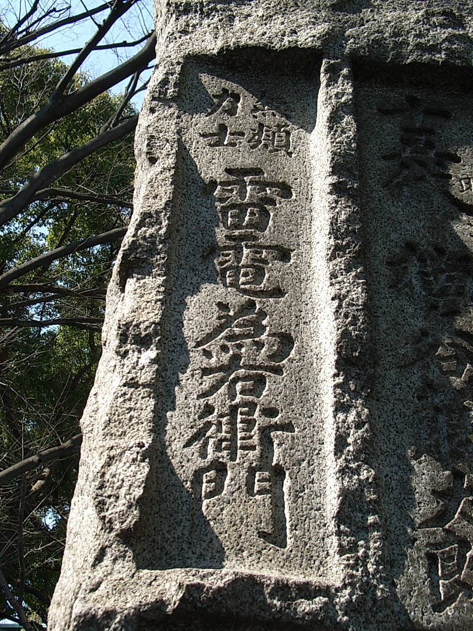 横綱力士碑の裏には歴代の横綱の名前が刻まれていますが、ここに唯一横綱以外で名前があるのが、「無類力士 雷電為右衛門」。