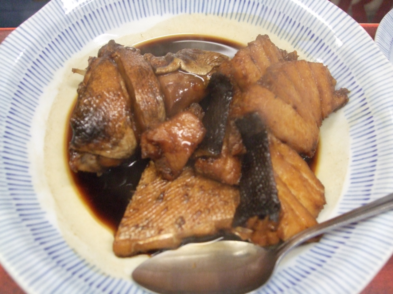 築地市場の中にある飯屋さんです。外部の人より、場内で働く人の食堂と言った感じ。うまいもの、新鮮なものを知っている人が馴染みにしているだけに、ここの魚は、どれも逸品で、いつ食べても本当に満足した気分になります。一番のウリはまぐろのぶつ切り。その他、たらの煮付け、カレイの西京焼もいいですね。ご飯と味噌汁に、こうしたおかずを付けて、1500ちょっと。この一角には、すし屋さんもあって、こちらの方は長い行列なのですが、こちらは落ち着いたもの。しかし、私としては「分かってない人が多いなあ」といつも思っております。
