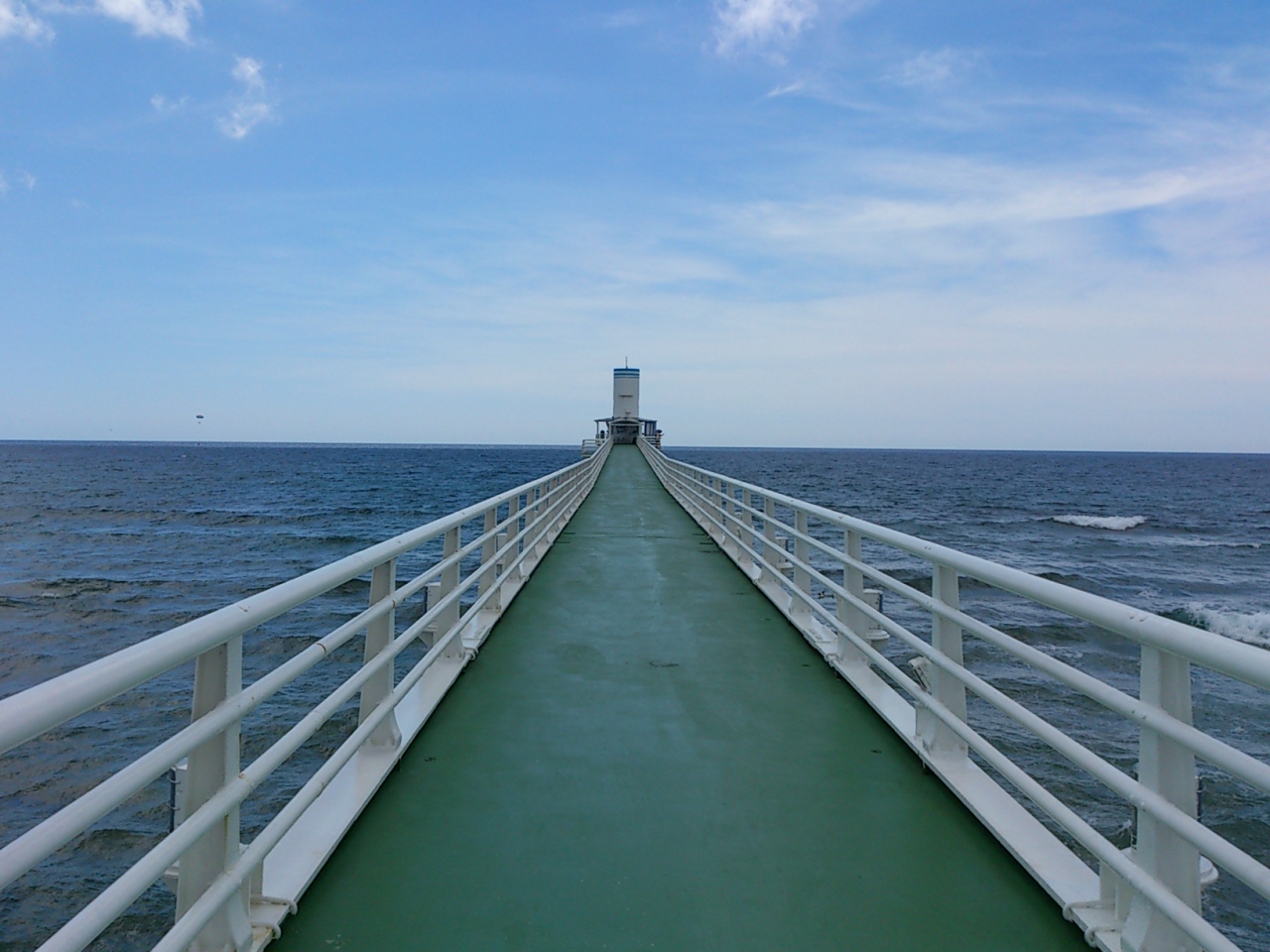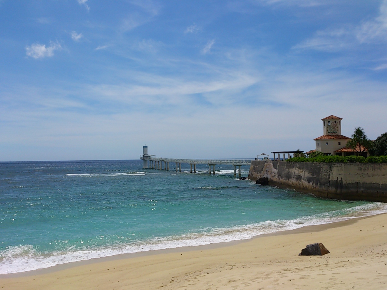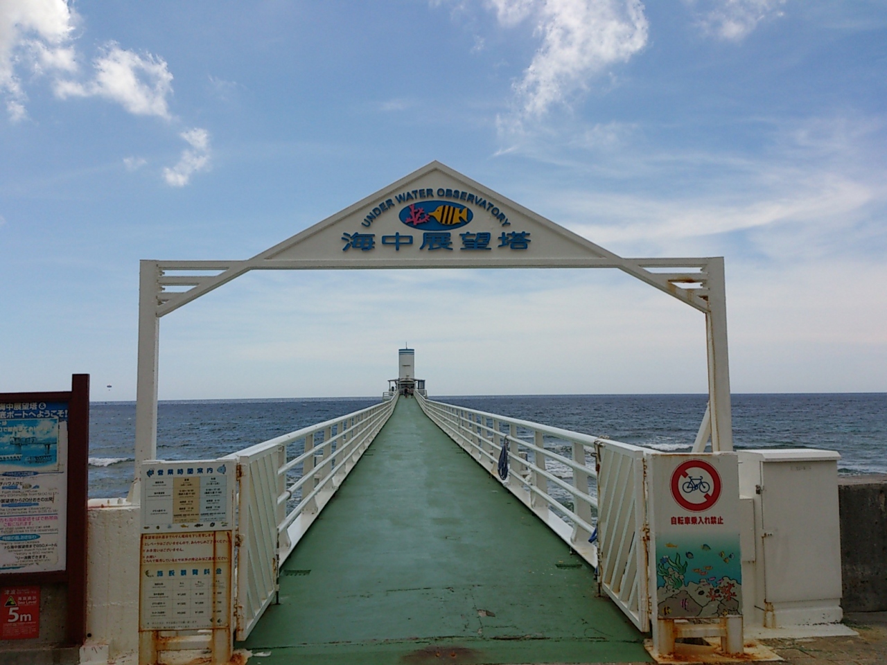 長い橋が目を引く海中展望塔へはブセナ内を走るシャトルバスでも行けます。
