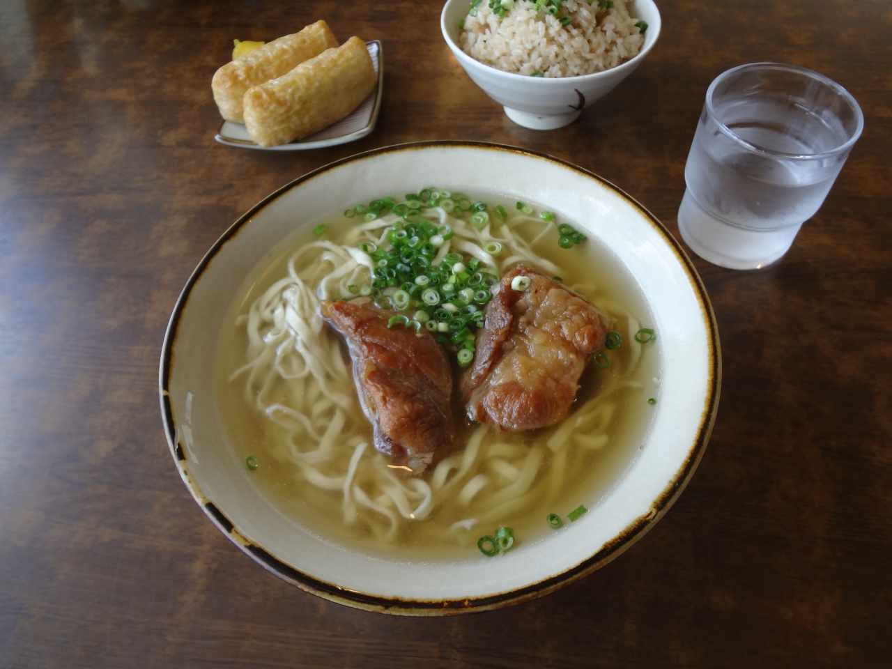 ガイドブックに乗っていたので遅い昼食で寄りました。お店はおそば屋さんというよりも、国道沿いの食堂といった感じの店構えです。やはり人気店なのか、2時頃だったにも関わらず、満席で10分程待たされました。お店に入るとまず食券を買います。食べたのはソーキそば(中)600円。かつおの出汁(たぶん)が効いていて美味しかったです。またトッピングのスペアリブはとっろとろでした。カーナビにもインプットされていたので場所はすぐにわかりました。お店の前に無料駐車場あります。