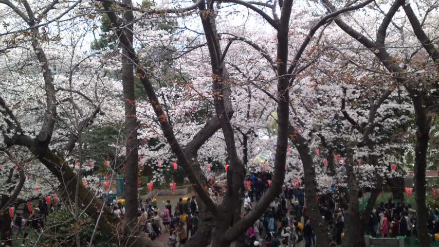 よくテレビではみていたものの、上野公園の桜をみたことがなかったので、行ってみました。土曜日ということもあって、シートに座ってお酒を飲んだり食べ物を食べたりしている団体の方でほとんど埋め尽くされていました。