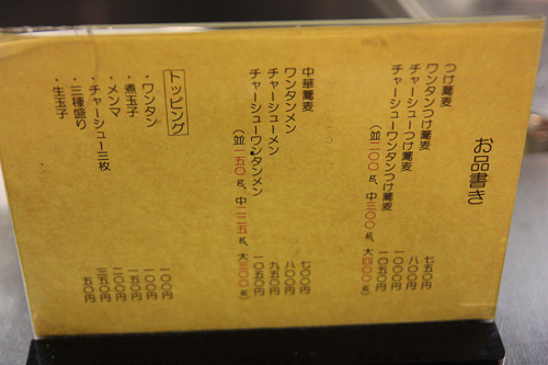 店名の「金魚」はラーメンに浮かぶワンタンを模して名付けたそうです。あっさり系の醤油らーめんとつけ麺をウリにしているようですが、自分の行った時は全員がらーめんの方を食べていたのでつけ麺がどんな感じかはわかりませんでした。北浦和東口の人気店です。