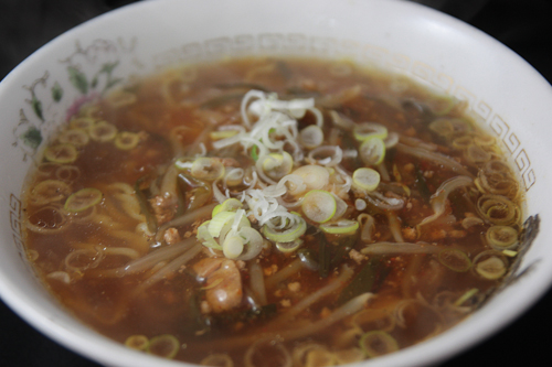県内に系列同名店はいくつかありますが、それぞれ独立営業だそうです。なんといっても昔からにゃんにゃん(と読みます)といえば「スタミナらーめん」お値段いまどきびっくりの400円です。ちなみに普通のらーめんは350円。立ち食い蕎麦屋なみの料金ですね。餃子も大将ご自慢です。