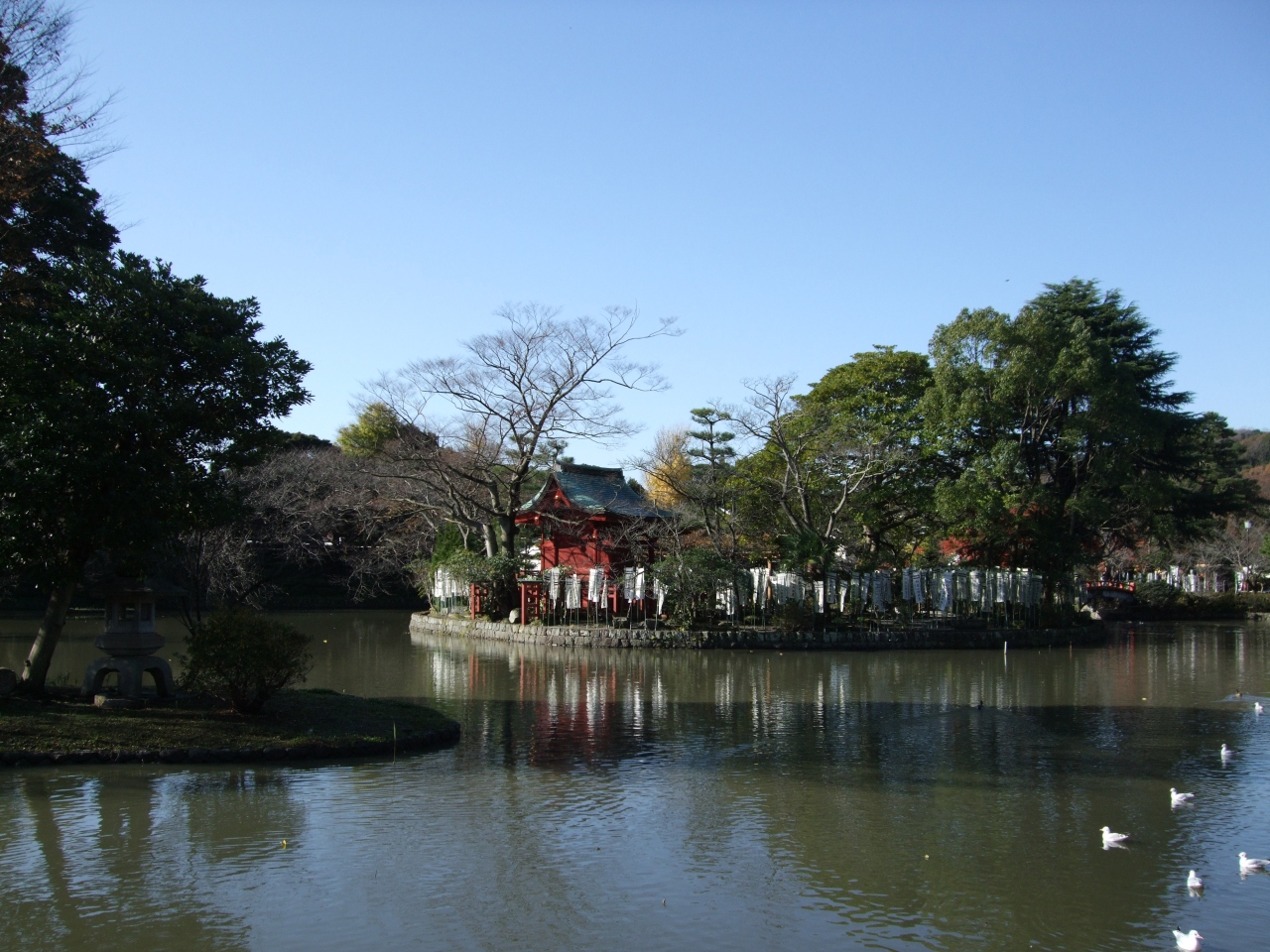 鎌倉国宝館を出て、鎌倉市街に戻る途中。帰り道は、たいていこの源氏池を巡るコースになります。源氏池の旗上弁財天社は、橋で渡れますので、それもよいのですが、やはり、こちらの休憩所から、池と一緒に眺めるのが一番だと思います。桜の季節は、左手の池周辺の花が濃いような。池には水鳥もたくさん飛来していますので、えさをやる家族連れもいて、和やかです。近くに、有料の牡丹園もあります。寒牡丹もあるのでしょう、この時期も公開していました。