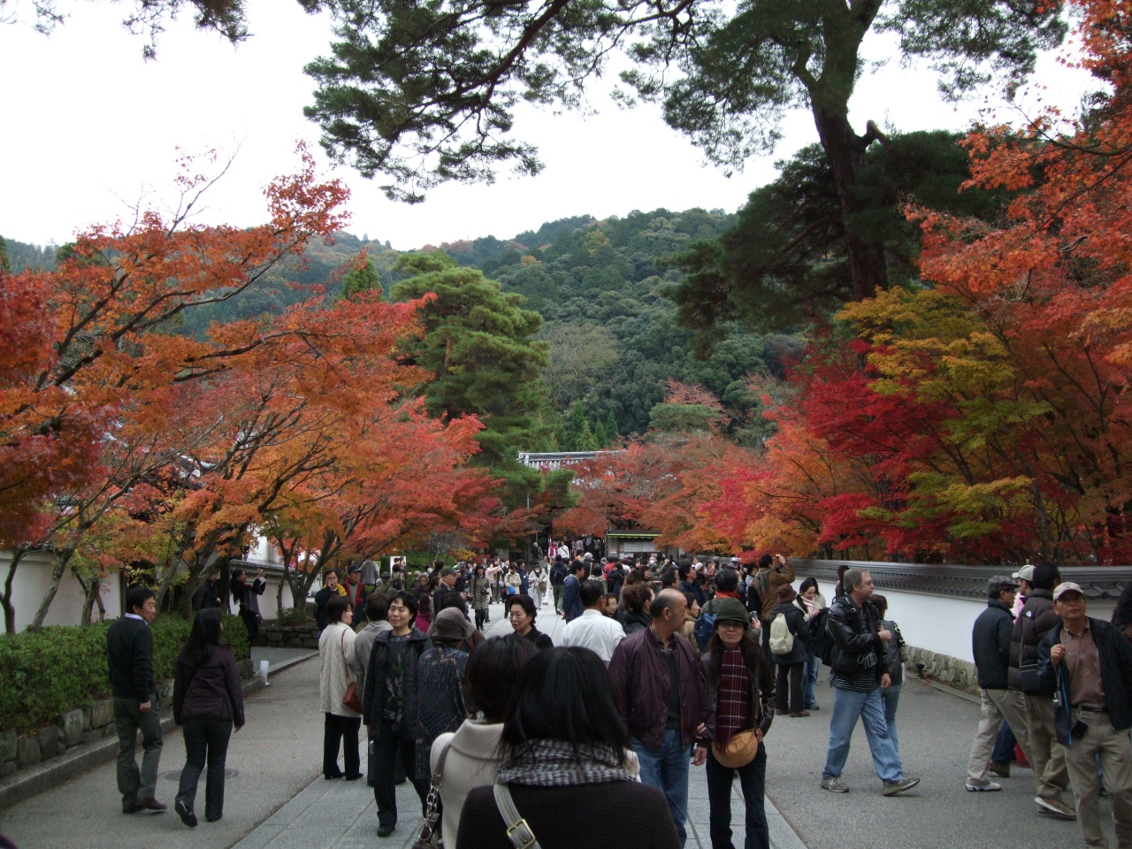 もみじの永観堂は、銀閣寺から南禅寺に続く哲学の道の途中。南禅寺の手前にある東山地区の大寺。もともとは、真言宗の寺だったようですが、今は浄土宗。しかし、本尊の見返り阿弥陀が、とにかく有名。東大寺から永観が背負って京都に持ち帰った際の逸話や先に立って念仏行道された際の「永観、遅し」の言い伝えがあります。さて、この時期の紅葉ですが、まずは参道のもみじと外塀のドウダンツツジの赤に圧倒されますが、境内は広々と奥も深くて、くまなく歩くとずいぶん時間がかかります。余裕をもって、訪ねる必要がありますね。