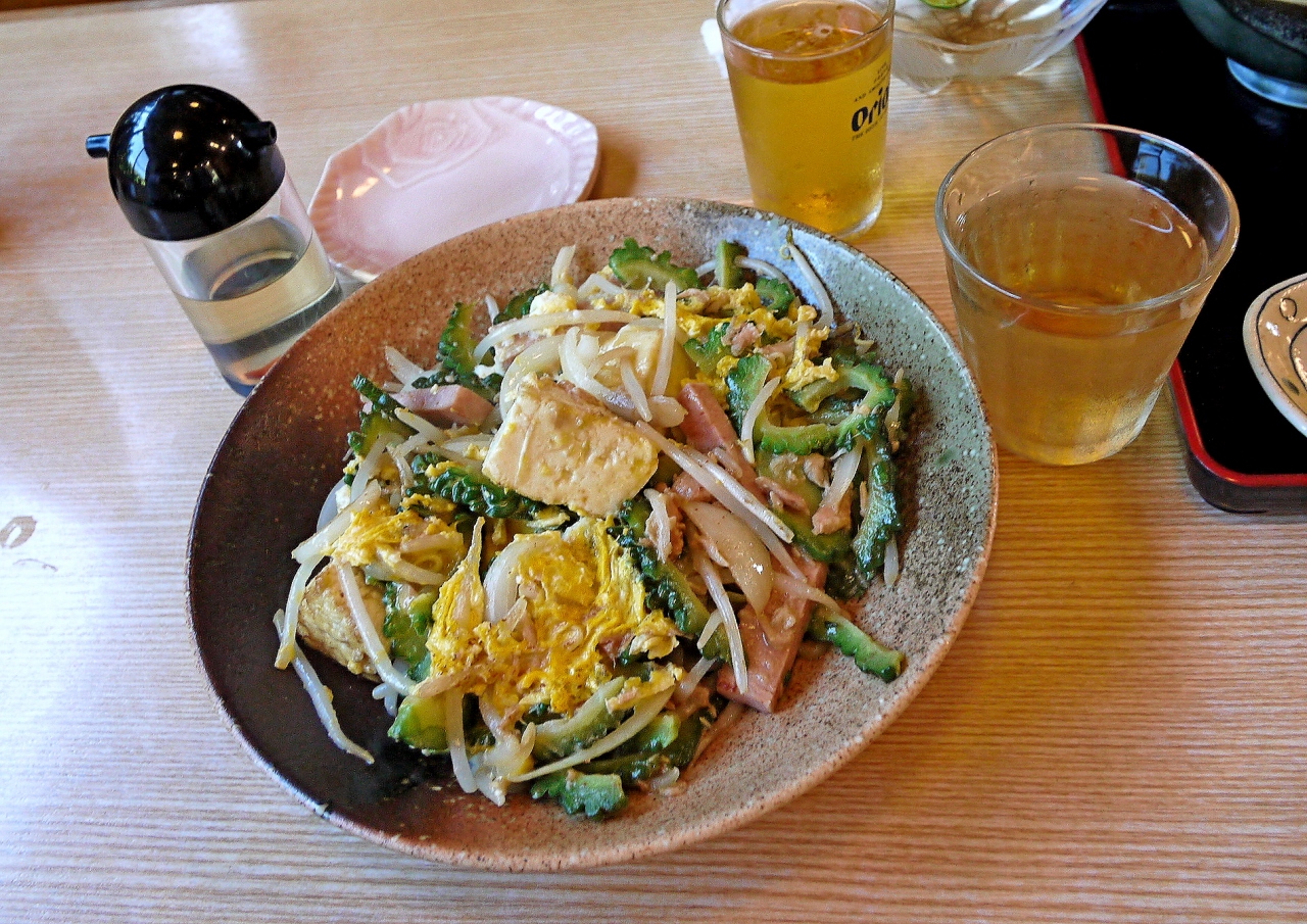 名物のいかすみそばではなく,私はそーきそばとジューシーのセットを頼んだ.650円と安い.ついでにもずくと豆腐チャンプルー.これもおいしかった.街道沿いの店だし,山の中にあるのでどうかなと思ったが,おいしかったし,そのボリュームにびっくりした.