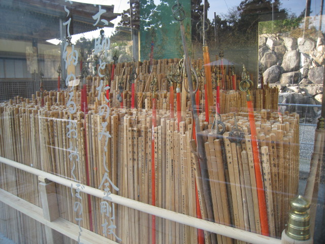 そして境内を見渡すとお遍路さんが長い間使った金剛杖がたくさん奉納されているところがありました。