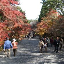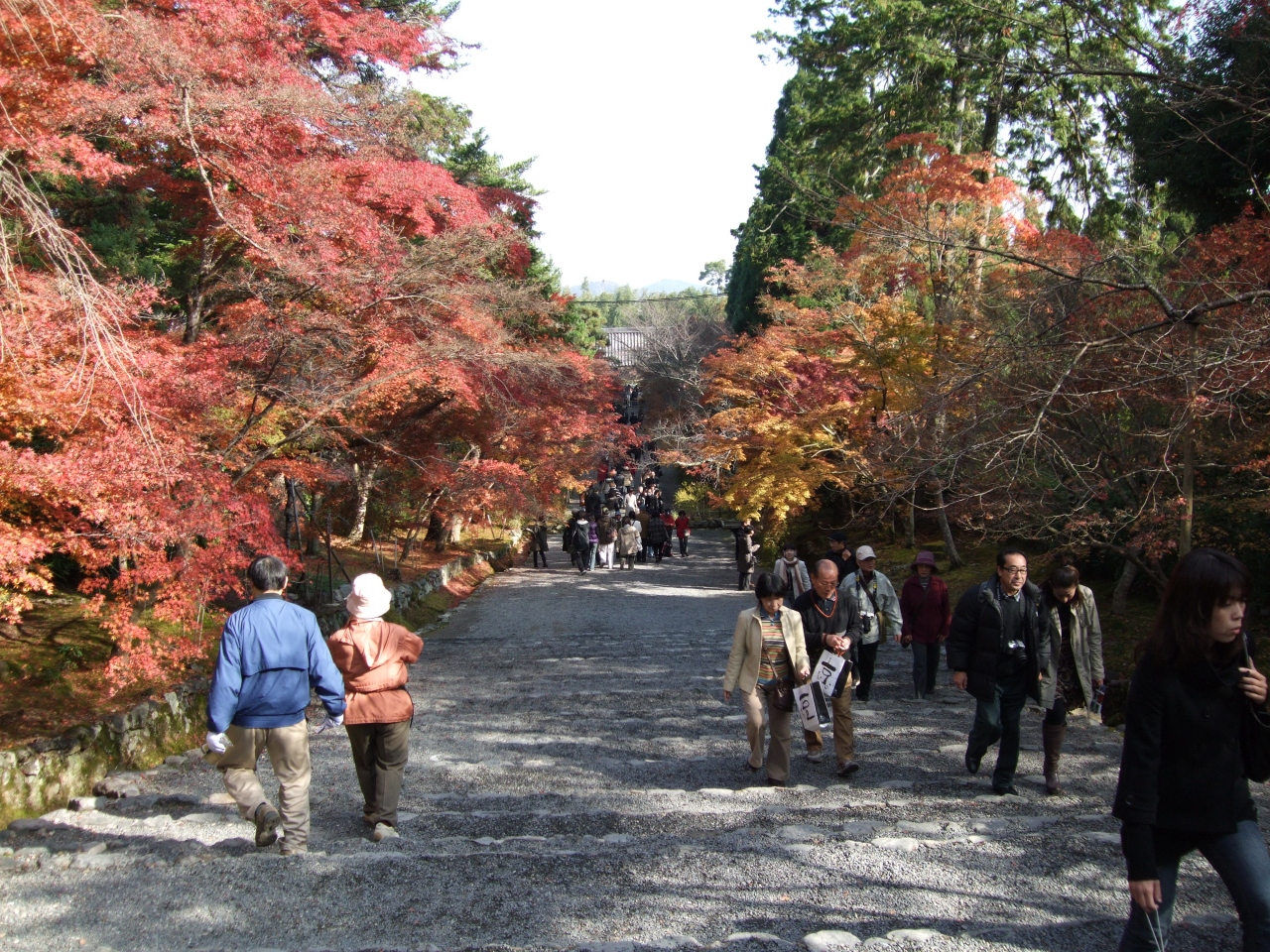 二尊院は、嵯峨野にある天台宗の寺。本尊に釈迦・阿弥陀の二如来(重文)をまつることから、この名がついた嵯峨野の名刹の一つ。広い参道はなだらかな石段が続いて、白壁の石垣に至ります。ここを馬が走ったかどうかはわかりませんが、両側のもみじが美しいので、「紅葉の馬場」と呼ばれています。山号は小倉山。あんこの小倉の小倉山です。また、総門は伏見城の遺構と伝わる薬医門。あまり華美な感じはしませんが。