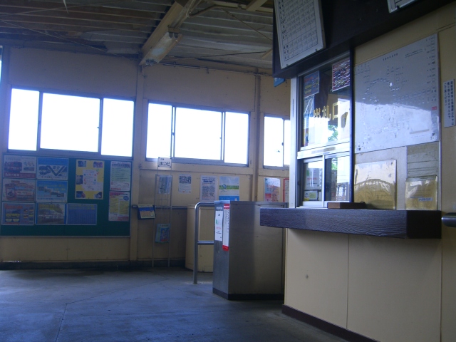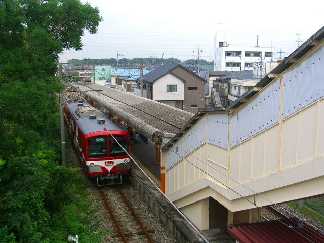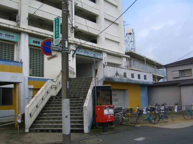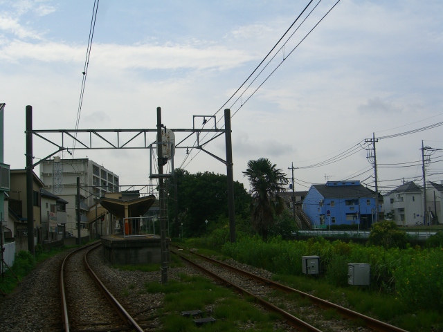 駅の上はマンションで、1Fと2Fは、店があったようですが現在は営業していなく看板とシャッターが閉まっていて寂れています。改札は階段を上がった2階にあり、ホームはまた階段で下りることになります。駅前は住宅街が広がっています。