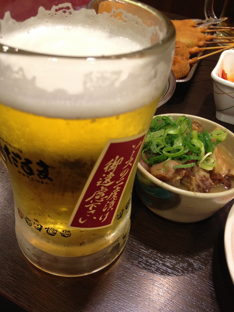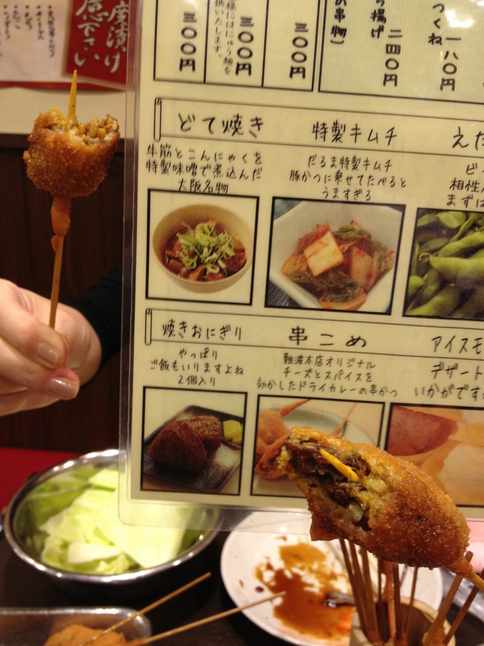 紅しょうがの串かつは外せません。いつもお客さんで一杯なので、並ばずにふらっと入れたらラッキー感が増しますね。大阪のド定番の串かつも、たまに食べると改めて美味しさを実感します。