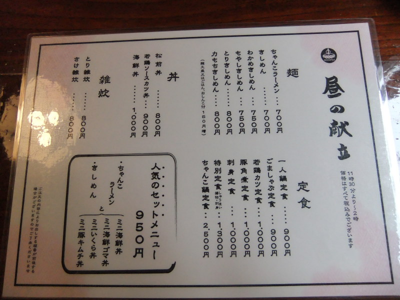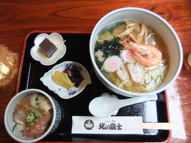 ちゃんこラーメンとミニ海鮮ごま丼を注文。