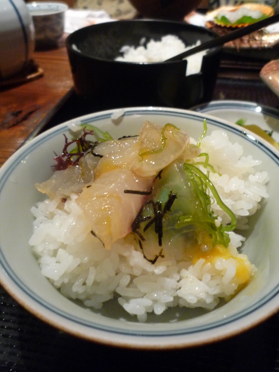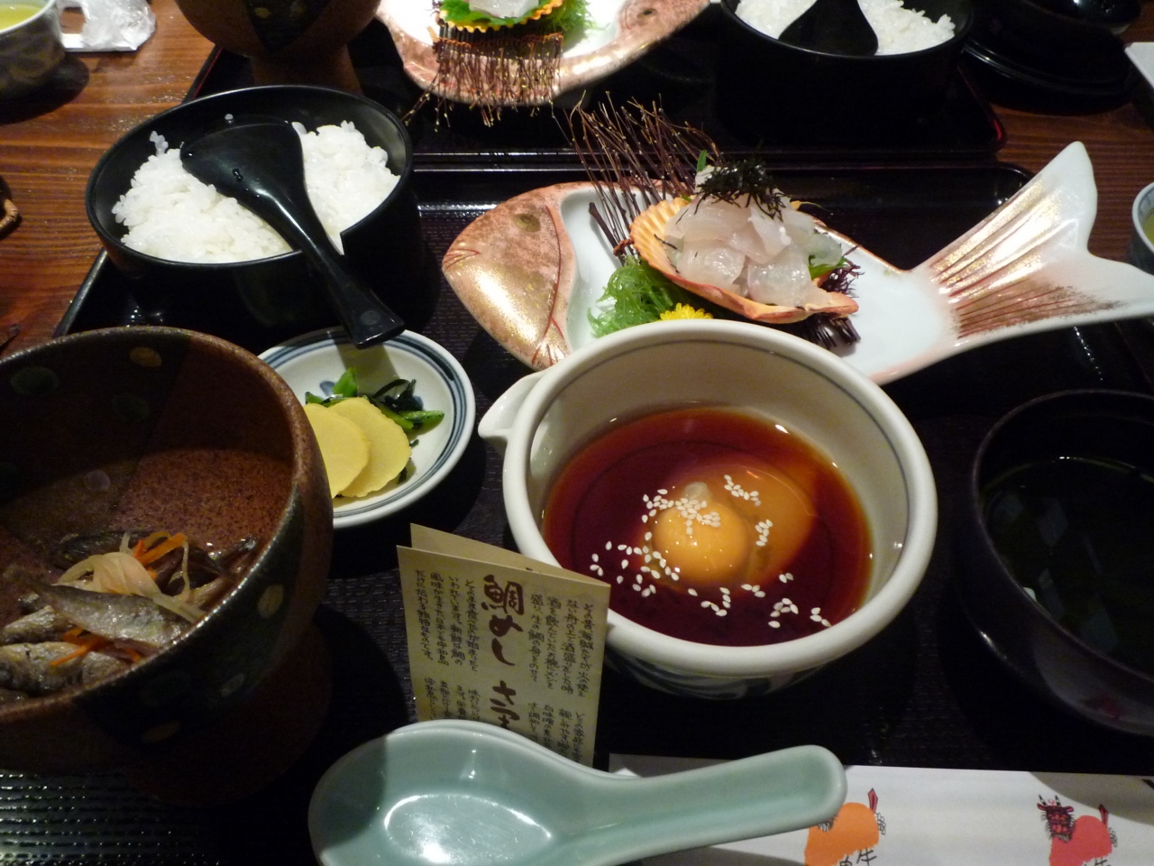 鯛をご飯の上に乗せ、とき卵とタレをかけてた食べるスタイルですが、