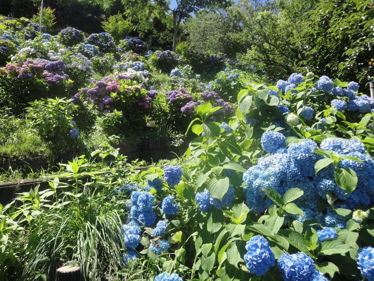 薄い水色、濃い青、紫…と彩りさまざまなあじさいが咲き乱れとっても素敵でした!