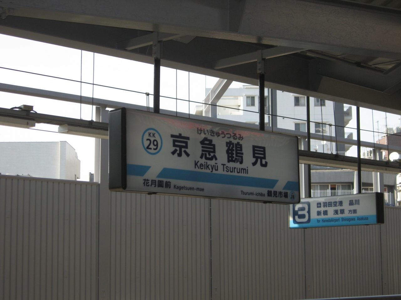京浜急行電鉄の鶴見駅です。東日本旅客鉄道(JR東日本)の鶴見駅は、ロータリーを挟んだ向かい側にあり、徒歩ですぐの距離です。ホームは高架式です。有名な総持寺は徒歩にすると15分くらいかかります。急行と普通列車が停車します。