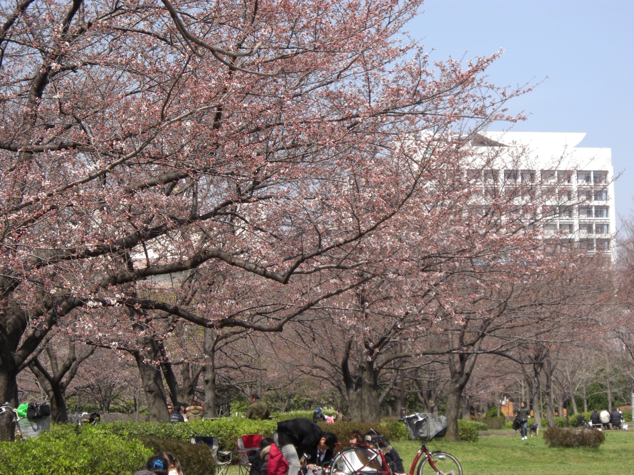 桜の時期に何度か訪れています。新大橋通りを挟んで北側のスペースには桜が多く植わっており、中央広場と芝生広場は、休日には家族連れを中心とした花見客でほぼ満席でした。他にも、野球場やテニスコートもあります。注意点は、公園専用の駐車場がなく、新大橋通りの路上駐車スペースは休日には満車のことが多いので、行くときにはいつも電車を利用しています。
