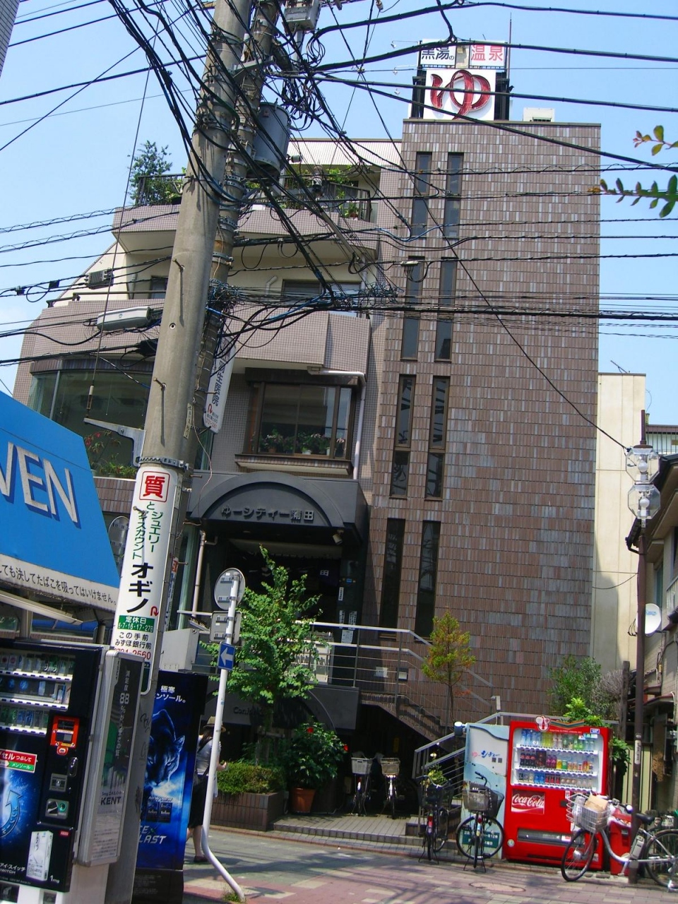 蒲田駅東口から徒歩5~6分の5階建ての建物で5階の上の看板には「黒湯温泉 ゆ」という看板が目立ちます。1階はコインランドリーで、風呂の受付と風呂は2階です。1階と2階は繋がっていません。入口で靴を入れて入ると直ぐ左側が椅子がある小さな休憩所、右が受付とチケットを購入する券売機があり入湯料450円(大人)です。サウナーもあり別料金です。石鹸、シャンプーは浴室にはないので購入も出来ます。脱衣所は100円ロッカーで料金は戻ります。電子体重計もあります。内湯浴室は水風呂も含め4つあります。どれも小さいですが少し深いです。露天風呂もありますが上部だけ少し空いているだけなので露天という感じはしないです。内湯は沸かし湯で、露天が温泉の黒湯で温まり良いです。3Fには飲食コーナーがあり無料で休憩出来るのが良いです。
