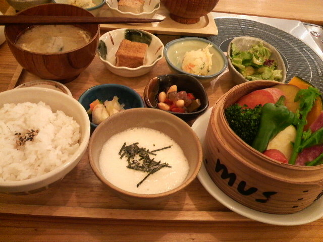 蒸し料理専門店その名も「ムス」。とにかくヘルシーです。お野菜がせいろで蒸されて出てきます。せっかくヘルシーなお店に来たんで野菜のみのセットにしましたが、ちょっと物足りませんでした…豚肉が入ったメニューもあるのでそちらのほうが食べごたえはあるかもしれません。