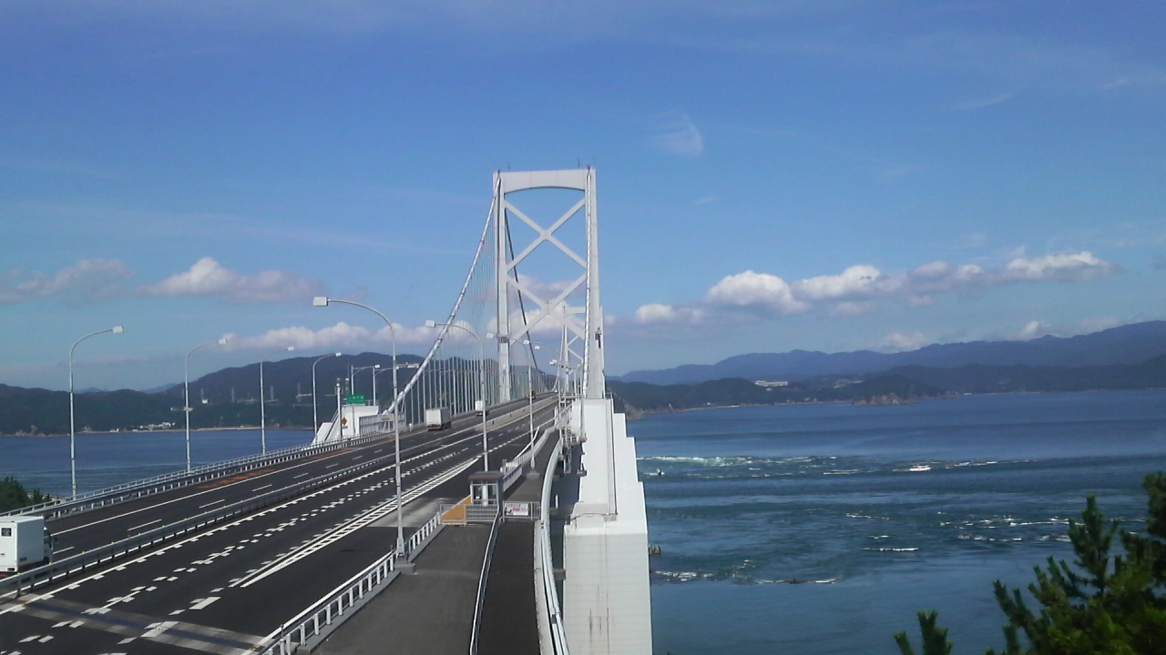 世界三大潮流の一つである鳴門海峡に架かる全長1629mの日本が誇る長大吊橋です。「渦の道」を歩けば、約45mの高さから鳴門のうず潮を望むことができます。下部は将来的に鉄道を通すことが出来る構造となっていますが、残念ながら全く具体化しておらず、宝の持ち腐れ状態になっています。