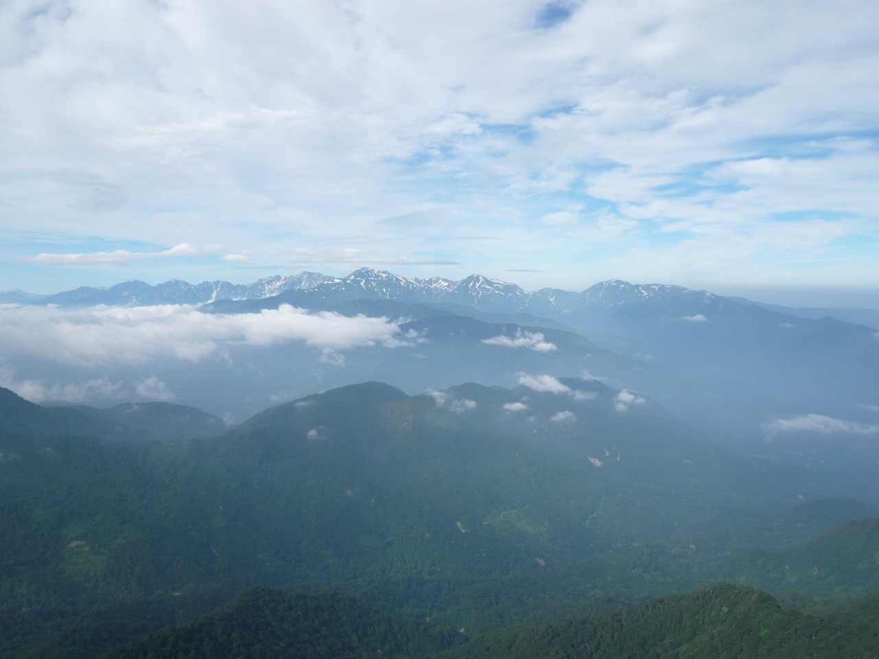 会社の連中と山登りで雨飾山に行きました。前日は麓のキャンプ場に前泊し、ビールに焼肉、皆で飲めや歌えでかなり出来上がりました。翌日は体力別に隊列を組んで登ることで無謀にも若手のばりばりと一緒に登ったのが運のつき。くだりでは雪渓辺りでバテバテとなり、出発地点に戻るころには吐き気まで催す始末。今から思えばあれは軽い熱中症か。山は皆でわいわいもいいけど、やはり山そのものを楽しむなら一人山行きが誰にも気兼ねせず自分にあっていると再認識。でも頂上からの眺めは最高でした。