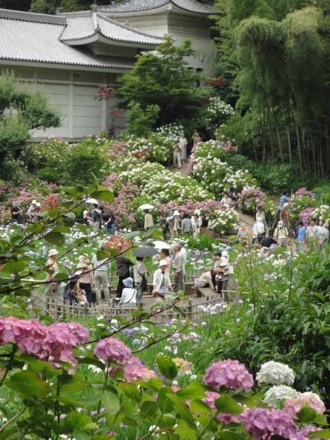 義母に誘われ訪れました。北小金駅で下車し、徒歩15分程度で到着。お寺に向う人の波についていけば迷うことなくたどり着けます。ご高齢の方好みの洋品のお店や野菜、みやげ物店などがの軒を連ね、帰りには一軒ずつ見て回りました。紫陽花は見事で若干高低差がある境内の中を散策しながらゆっくり見て回りました。紅葉の時期も美しいそうです。