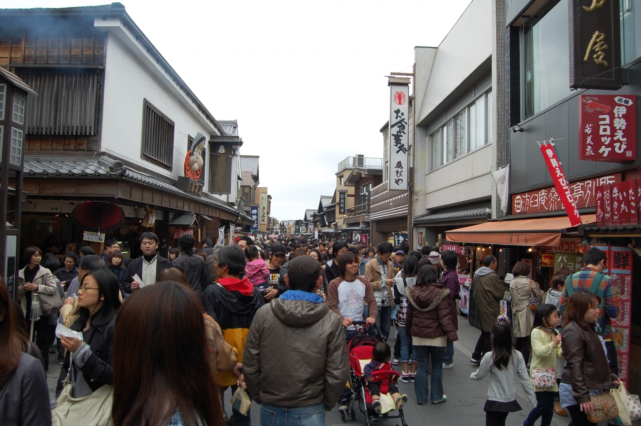 伊勢神宮参拝後、近鉄五十鈴川駅まで歩く途中の参道です。