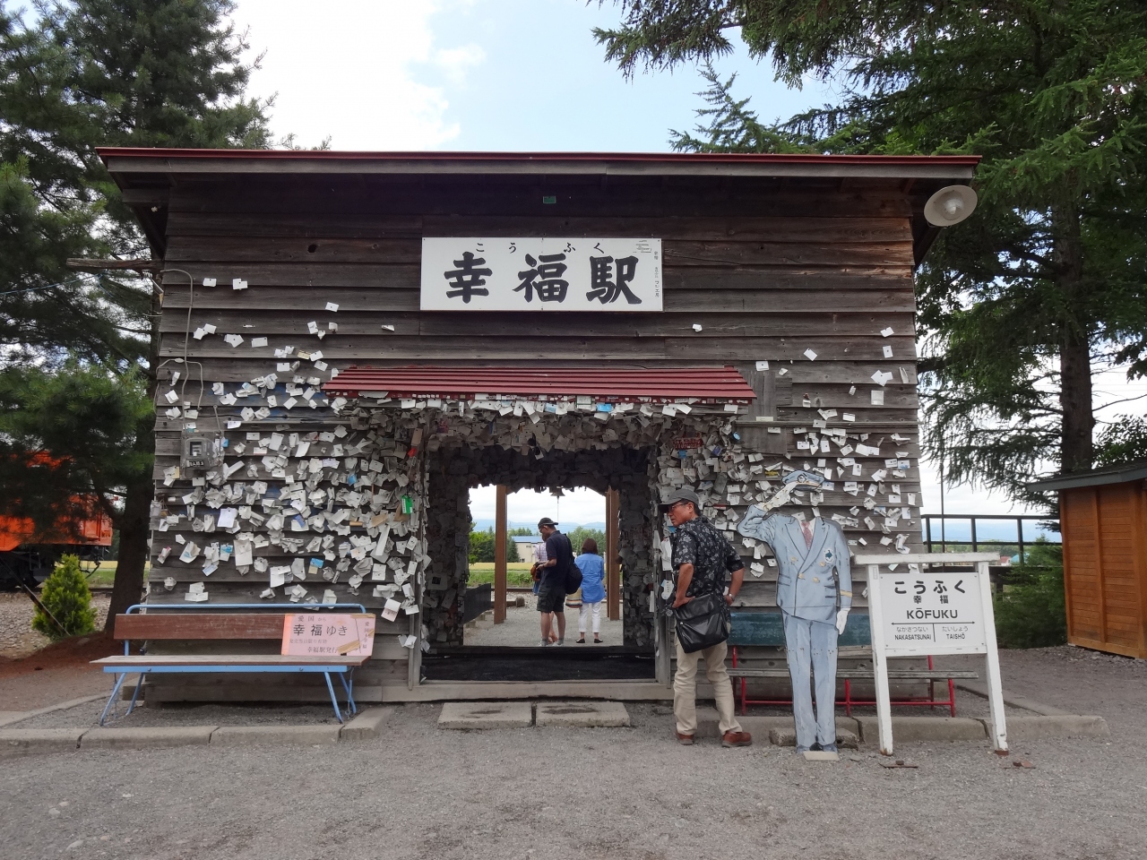ディーゼルカーが2台展示されており、中にも入れます。昔の駅舎にはなぜか名刺がたくさん貼付けられていて、中国台湾系の名刺もたくさんありました。観光バスの立寄りルートのようで、団体のバスが着くと雰囲気が一変します。