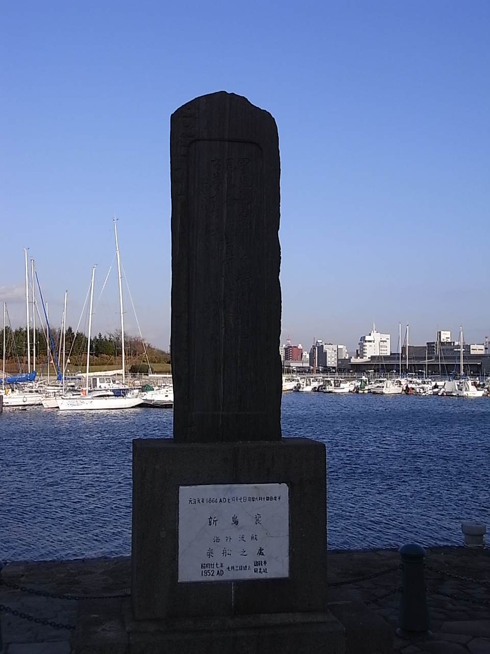 そこの波止場(?)に、新島襄渡航の碑が立っています。