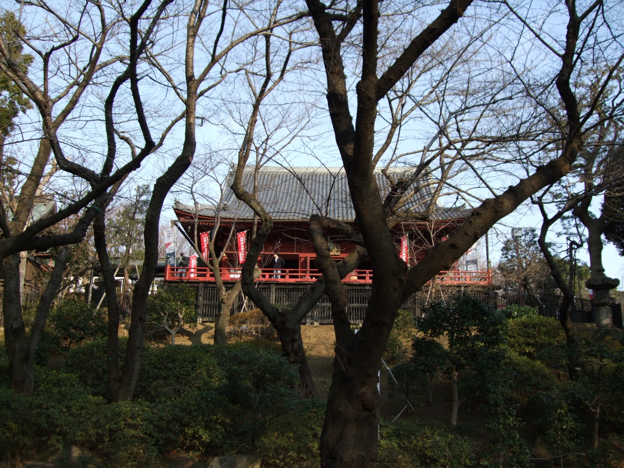 上野の西郷隆盛像の後ろ側。赤い神社のような建物が見えるのですが、それがこの清水観音堂(重要文化財)です。寛永寺の開山、天海大僧正によって創建されました。この建物は、不忍池の方向に舞台が突き出ていまして、清水の舞台を模したもの。いつだったか、テレビの「もしもしツアーズ」で、絶景ですとか紹介されていましたが、冬の木々が枝だけになった時期でも、眺めは特によくありませんでした。ちなみに、寛永寺自体が比叡山に倣ったもので、江戸城の鬼門を守るために建てられたもの。清水観音堂もその一つです。