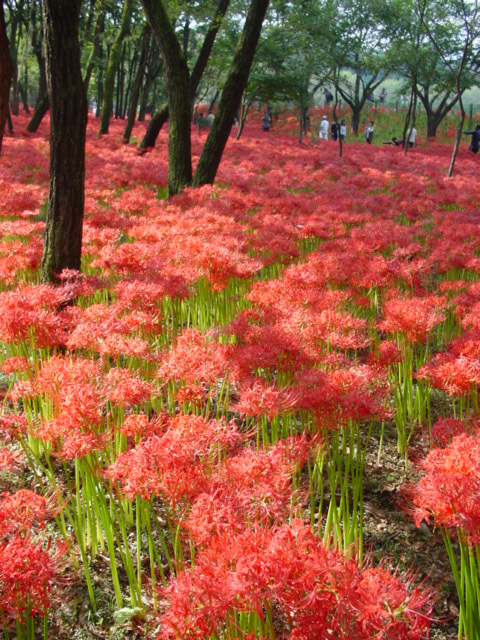 東京都心から西武池袋線を下った埼玉の巾着田は、曼珠沙華が有名です。