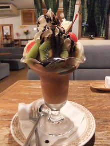 チョコレートパフェを注文。見た目は飽きそうだと思いましたがアイスがおいしいです。