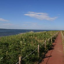 そのキャンプ場を通って海岸線に出ると、岬を一周できる遊歩道があります。一周20分位。人けはあまりありません。遊歩道の周りにはハマナスやいろいろな花が咲き、野鳥のさえずりも聞こえ、とても心地いい散歩が出来ます。