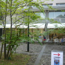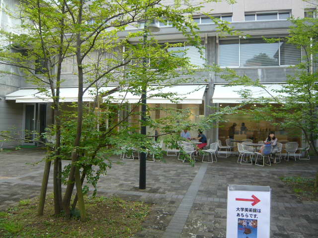 東京藝大の中には美術館がありますが、美術館の建物とは別にこちらのアートプラザもあります。入口前には広場に面したテラス席もあるので、一休みも出来ます。