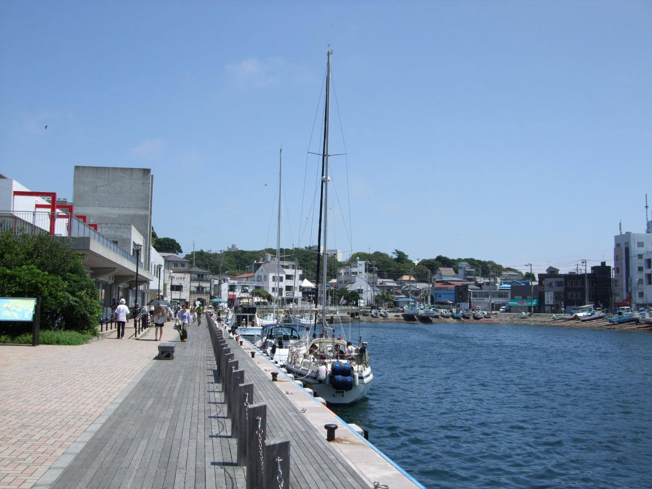 三崎口から城ヶ島まで向かうバスで途中下車して三崎港へ。三崎港内にある産直施設のうらり。さすがマグロで有名な三崎だけあって、でかいマグロの兜があったり、活気に溢れていました。また、屋上からの眺めも、正面に城ヶ島灯台が見えたり、なかなか。ここから発着している城ヶ島への渡し船も行き来していました。