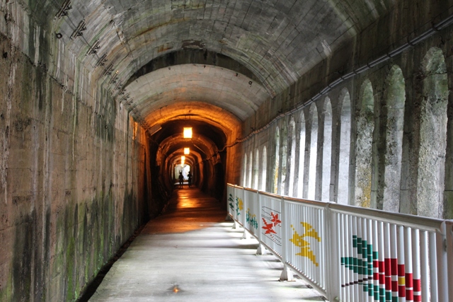 トンネルを抜けると、トロッコの線路沿いの道路に出られ、