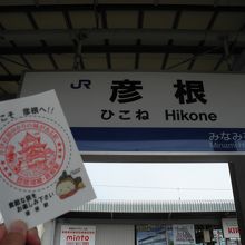 彦根駅のスタンプです。彦根駅といえば、当然、彦根城ですね。このスタンプは、井伊直弼ゆかりの城がある駅と、ネーミングされています。そのスタンプを押す紙も可愛らしい子供の絵も付いていて、ぜひ、スタンプしてみて、楽しんでみてください。