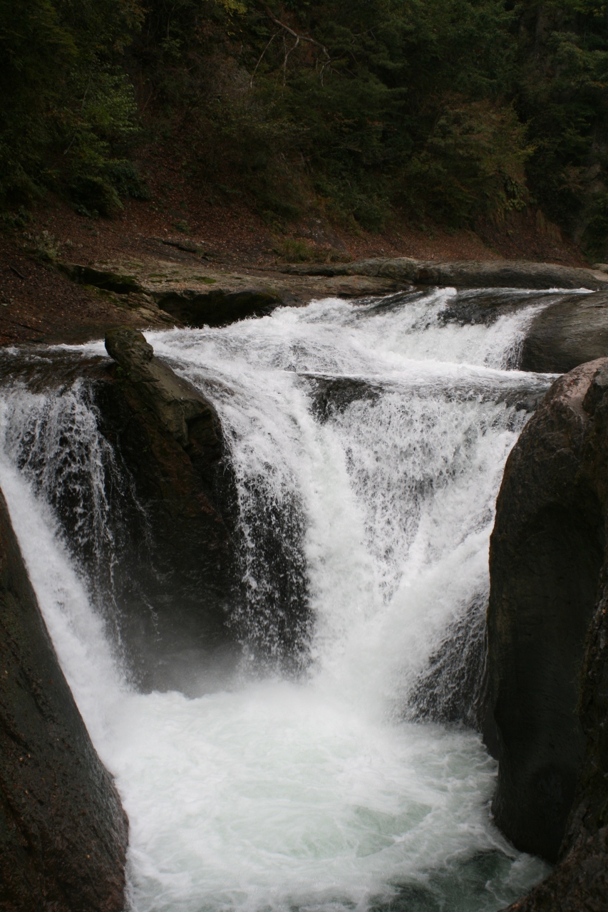 凝灰岩、花崗岩の川床を流れる片品川の清流が 岩の柔らかい部分を侵食し、大きな割れ目ができたところを ゴーゴーと流れる様子は 迫力満点!!