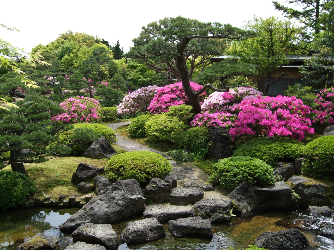 大根島はぼたんと朝鮮人参の島。この由志園は大根島で、一番有名な牡丹園です。ぼたんの見事さ・種類や数の多さもすごいんですが、何といっても、ベースの日本庭園がしっかり造られていることがほかと違う点だと思います。この日も牡丹が盛りで、素晴らしかったのですが、写真を撮るとなると日本庭園の見事さが先に来てしまいます。池に築山、松の枝ぶり。基本ができています。