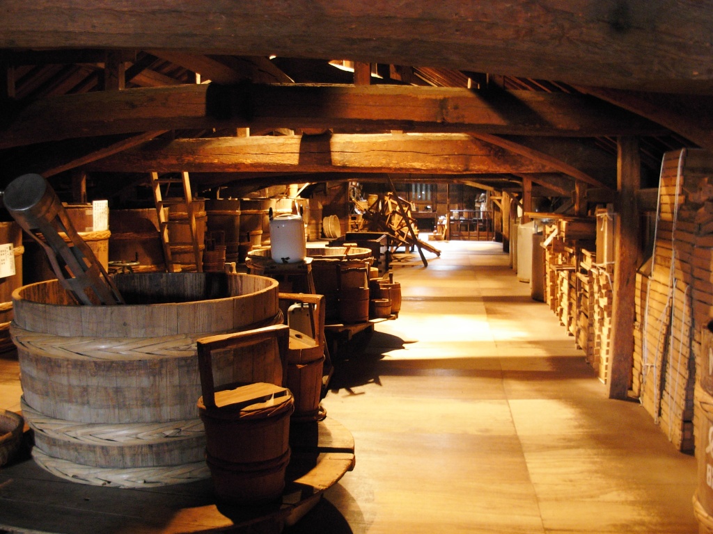 大分県日田市の老舗の蔵元、薫長酒造に江戸時代に建てられた酒蔵を利用した資料館がありました。昭和30年代の酒造りの道具が並んでおり、当時の酒造りの様子を見ることができます。室内に入ると、かすかな酒の香りが漂ってきます。薫長酒造の製品を並べた薫長酒館では新酒や焼酎のほか、酒かすなんて商品もありました。面白かったのは、蔵元で使われていた前掛けが販売されていたこと。結構、厚手で丈夫そう。でもエプロン代わりにはならないよなあ。