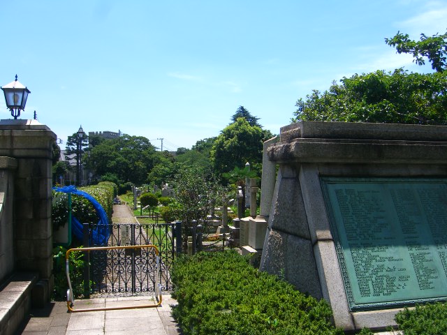 高台にあり、敷地内には関係者以外は入いれず、入口に少し入ったエリアで見学することになります。高台にあるので平地でなく斜めにお墓があります。日本の墓と違い、墓地という暗さは感じないです。入口の横には無料の資料館があり写真が飾ってあります。
