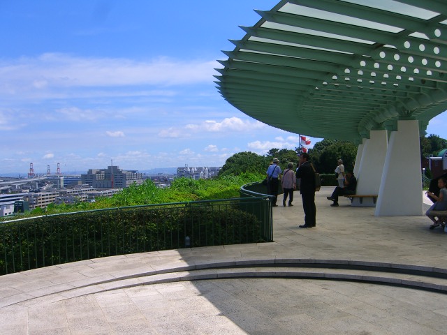 高台にある中心部分の展望台から場所からベイブリッジや横浜市内が見渡せ気持ち良いです。北西側のフランス山は木々が生い茂り展望台とは雰囲気が異なります。木陰にはベンチもあり暑さをしのぎました。南東側にはローズガーデン、大佛次郎記念館、県立神奈川近代文学館があります。