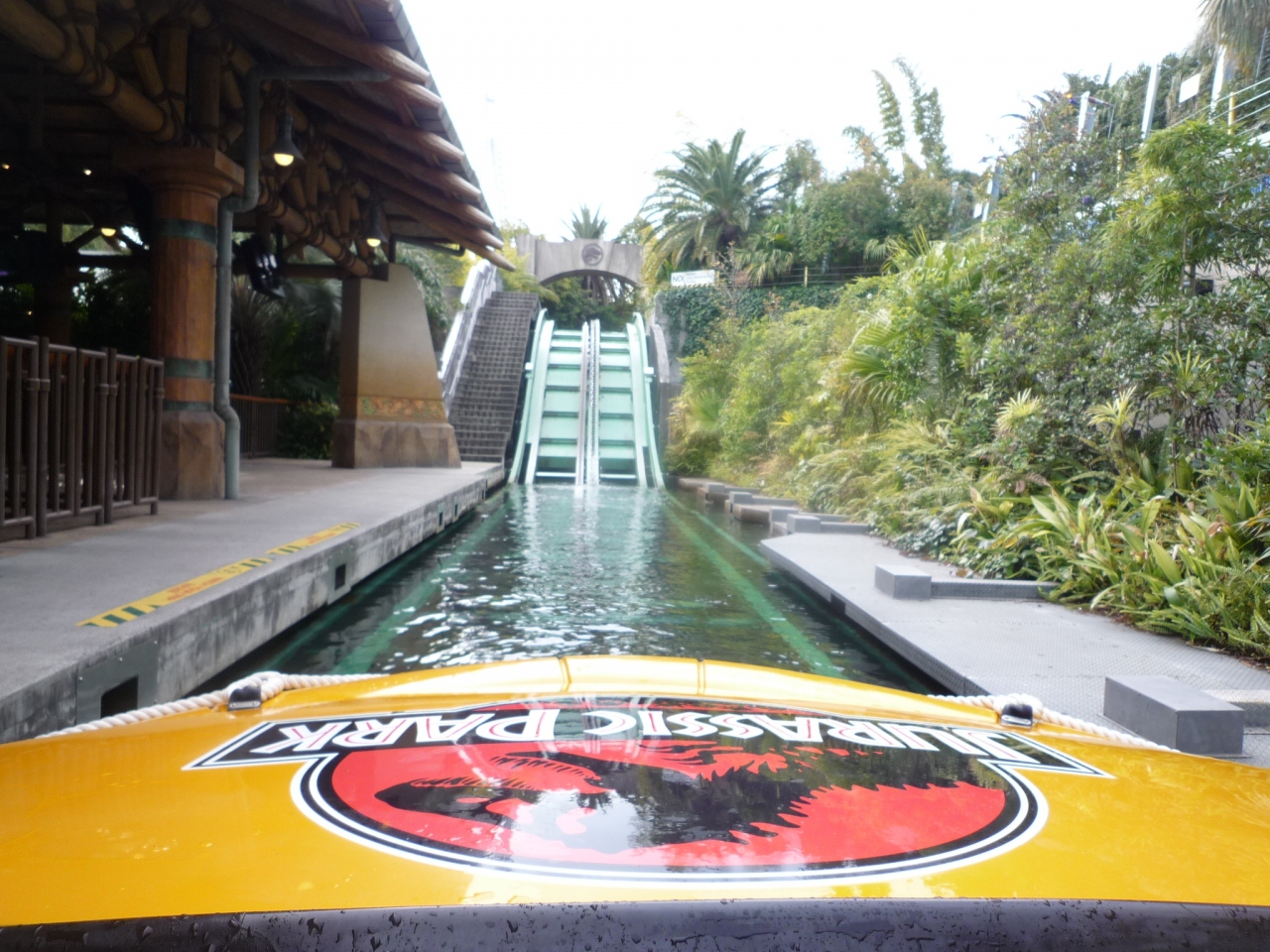 ジャラッシックパークでアトラクションでは、防水用のカッパ等が必要。