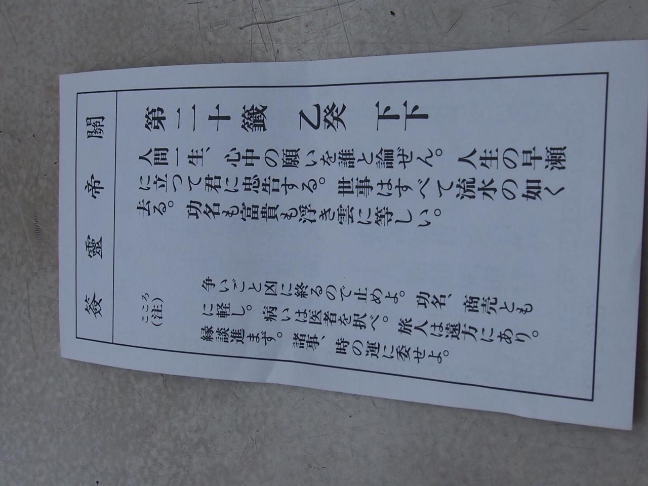 ここのおみくじは変わっていて悪い事が出た方がよい結果に出るとの事。