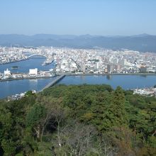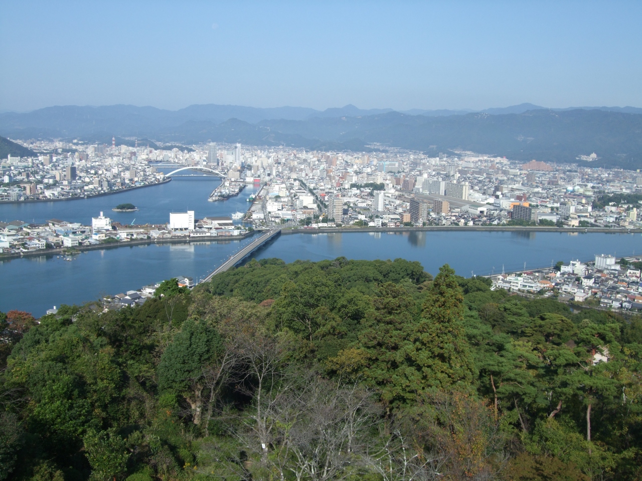 五台山の展望台から高知市を見下ろしたところ。川は鏡川。ウラド湾に注いでいます。高知市は昭和50年代には何度も水害に会っていまして、最後は高知市長がたまりかねて、自分の身は自分で守ってくれと泣き言をいってしまったと言う逸話もあります。河口の干拓を進めすぎたのが原因だったようで、今は解消されているようですが・・