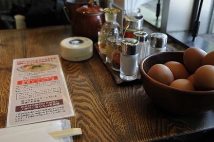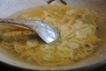 チータンタン(鶏蛋湯)は、じゃじゃ麺を一口食べ残した中に卵を割り入れてかき混ぜ、そこにスープを注いでもらうようになっています。