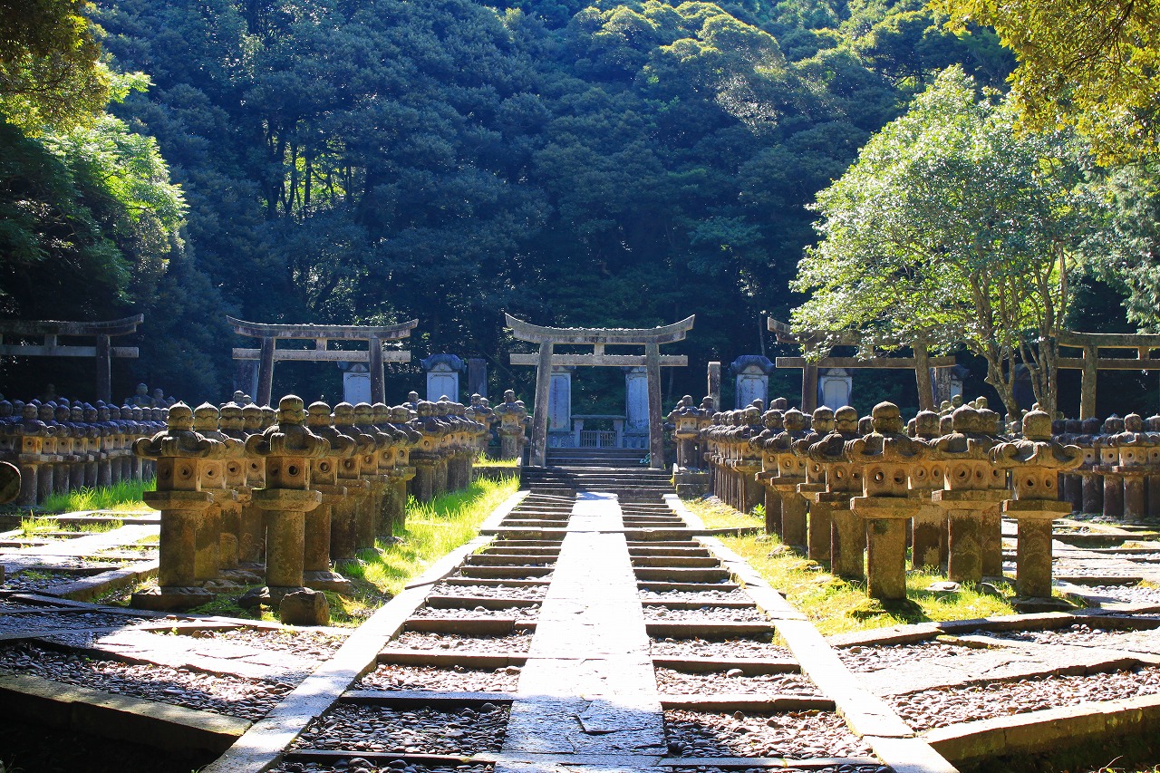 東光寺では拝観料が300円と少し高いので躊躇しましたが、大雄宝殿の奥にある毛利氏廟所を見てびっくり。ここには、萩藩の3、5、7、9、11代藩主と各夫人の10基の他、近親者の20余基のお墓があり、そのほかに神道石碑6基、華表5基、重臣諸家により献上された石灯籠500基が整然と立ち並び、当時の萩藩の権勢がしのばれます。ここは、一度は見る価値があると思います。ただ残念なことに日曜日にもかかわらず観光客は私たちだけでした。(その分独り占めにでき最高でした。) 残念なことに、ほとんどの観光客は松陰神社を見てほかの場所に見学に行くようです。萩に行った際には是非とも寄ってもらいたいと思います。ちなみにここへは、東萩駅からレンタサイクルで約20分で行けます。(松陰神社からだと10分足らずです。)駅からは上り坂ですので行きはしんどいですが、帰りは楽チンです。