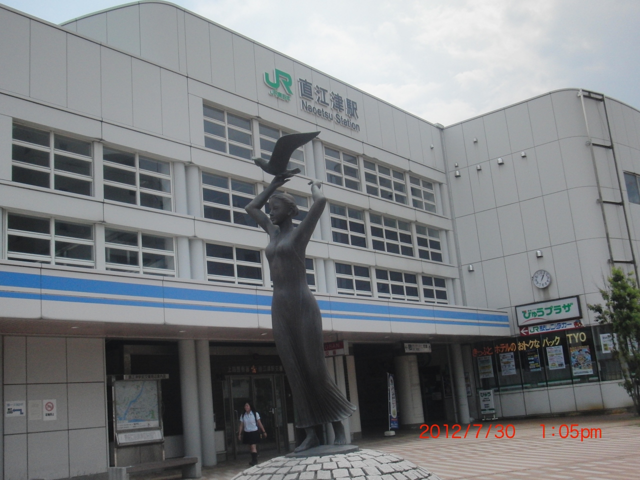 この駅から、新潟方面に行くか、金沢方面に行くかの分岐点になる駅ですが、駅前にはホテルが1つあるだけで、あとは何もありません。 イト―ヨーカドーまでは、駅から少し歩きます。 待合室も広いし、エレヴェーターもあるので、列車待ちの時間をどの様に過ごすかが問題です。