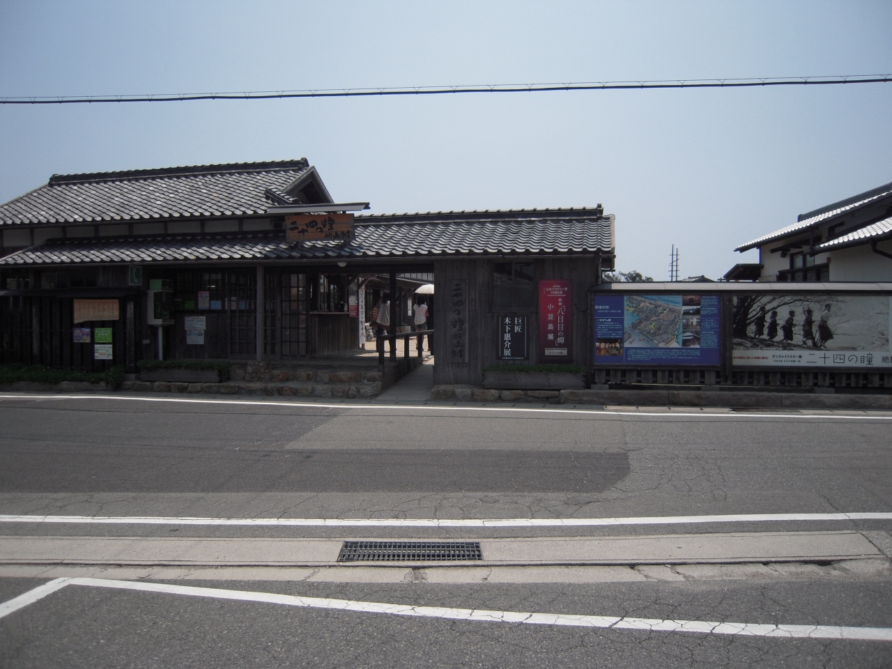映画村内の、分教場、壺井栄、二十四の瞳の映画を見学。