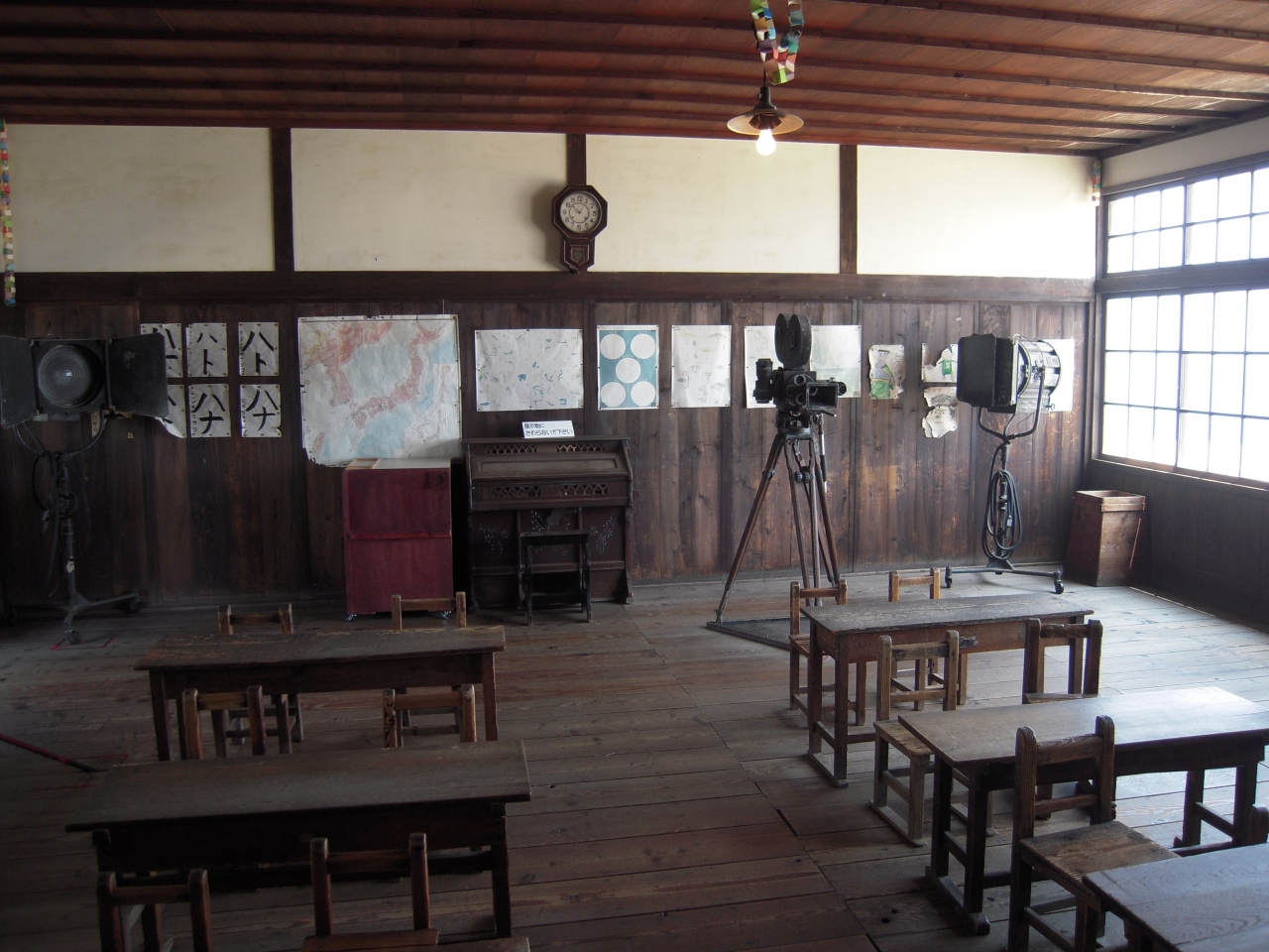 教室は、戦後の懐かしい机と椅子。