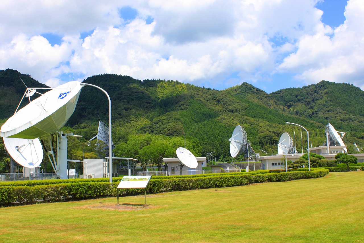 入場する時に、KDDI山口衛星通信センターの受付で、氏名などを記入する必要があります。ここの施設にいたずらされると国内外の通信に多大な影響があるためのようです。パラボラ館内には、衛星通信のしくみに関する各種展示があり、一つ一つ見ていくと結構面白いです。ちなみにここの通信センターでは19基のパラボラアンテナがあり、日本で最大の通信センターだそうです。