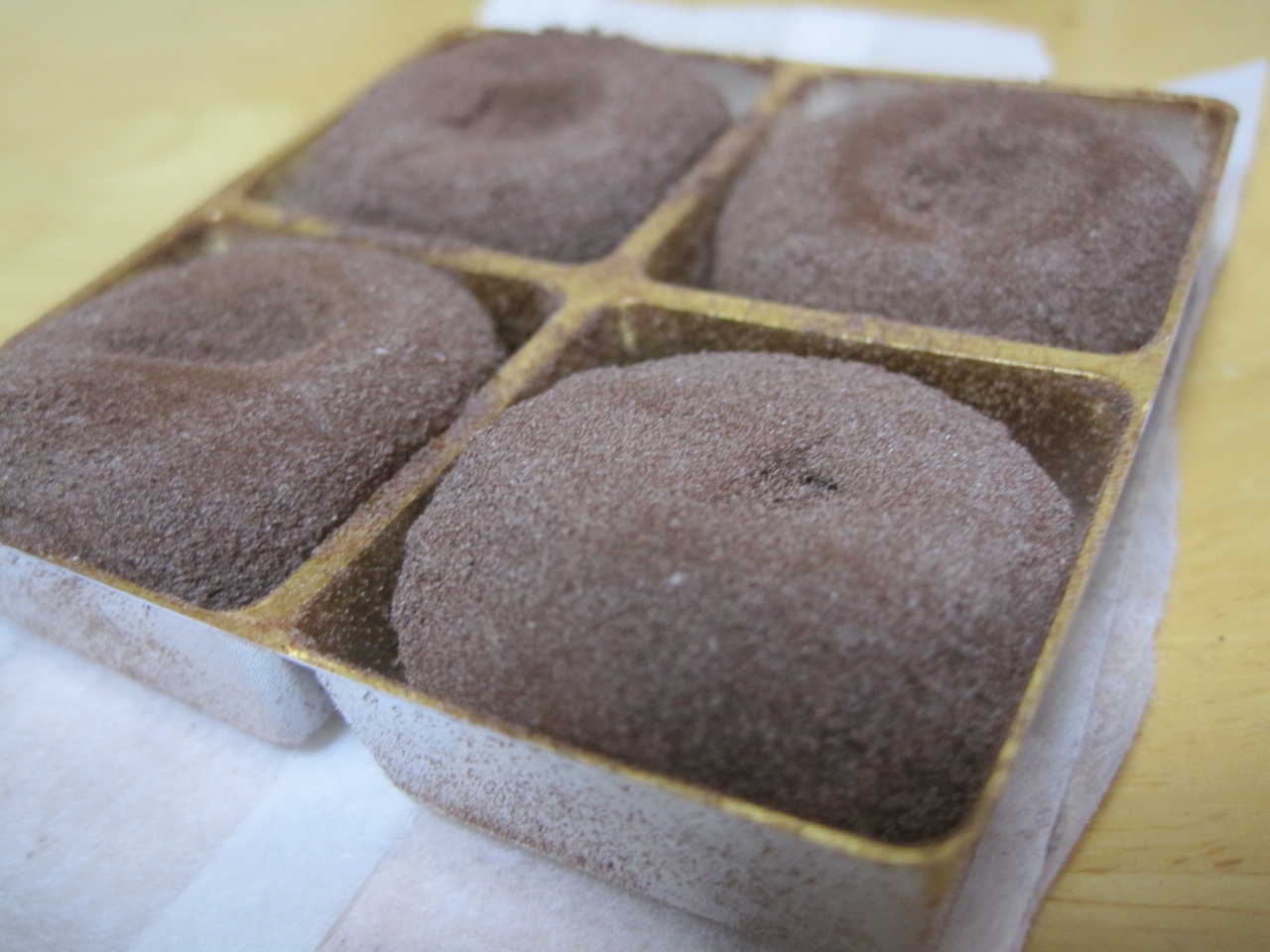 その小さな包みを開くと4個の丸型チョコが出てきました。